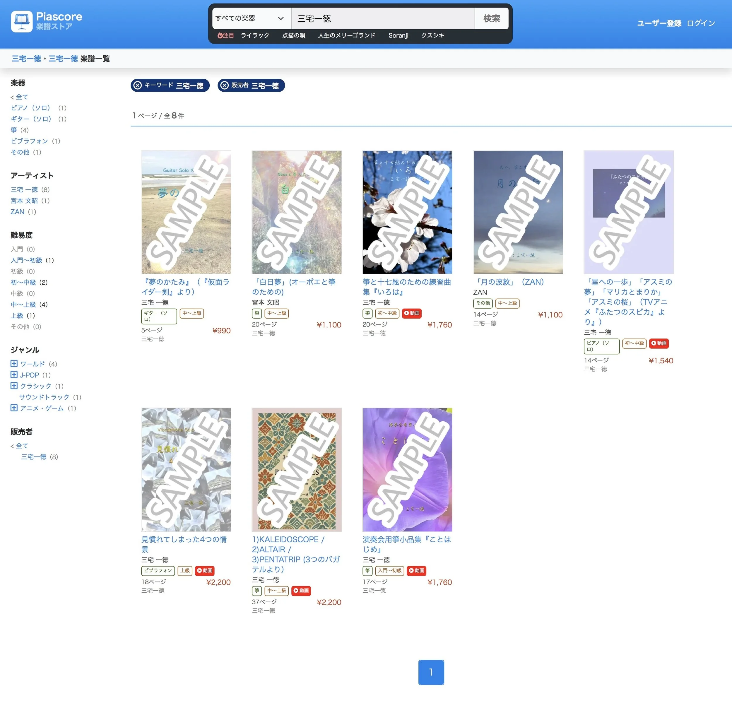 Piascore オンラインストアで出版している楽譜へのリンクです。PianoやGuitar、Vibraphone等のソロピースから邦楽楽器のアンサンブルまで各種取り揃えています。